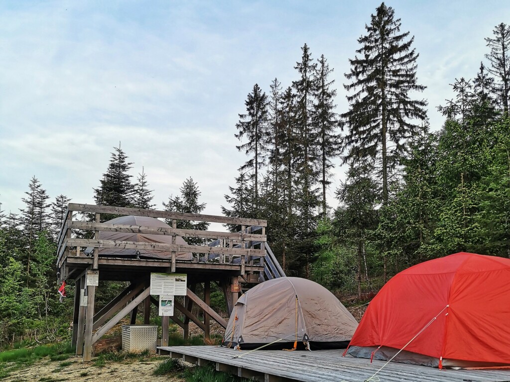 Wir werden auf unserer Tour auf den Trekkingplätzen Kobach und Thüringer Warte übernachten. Es gibt an diesen Plätzen ein einfaches Trocken-WC, jedoch kein fließendes Wasser oder Elektrizität. Somit können wir eine echte Wildzelterfahrung sehr gut simulieren.